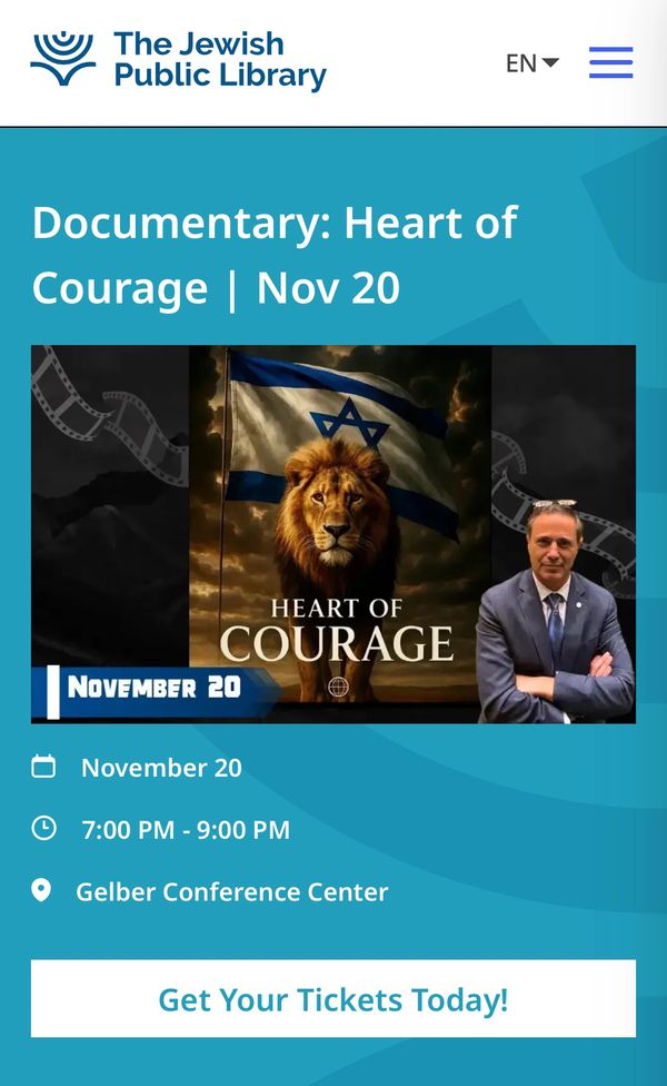 The Jewish Public Library, in collaboration with The Abraham Global Peace Initiative, presents: Heart of Courage, a documentary about October 7, 2023.