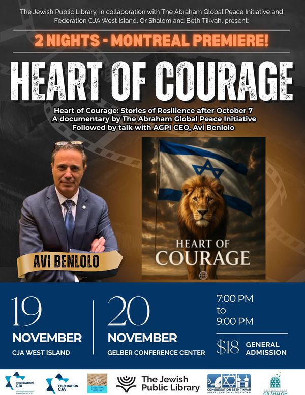 The Jewish Public Library, in collaboration with The Abraham Global Peace Initiative, presents: Heart of Courage, a documentary about October 7, 2023 – A 2 night Montreal Premiere!