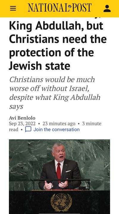 The hypocritical duplicity of King Abdullah's remarks at the UN also contradict the facts on the ground in all the Arab nations that surround Israel. Including Jordan itself, where the International fellowship of Christian and Jews reports that Christians face oppression and lack employment opportunities due to laws that prevent many refugees from working.