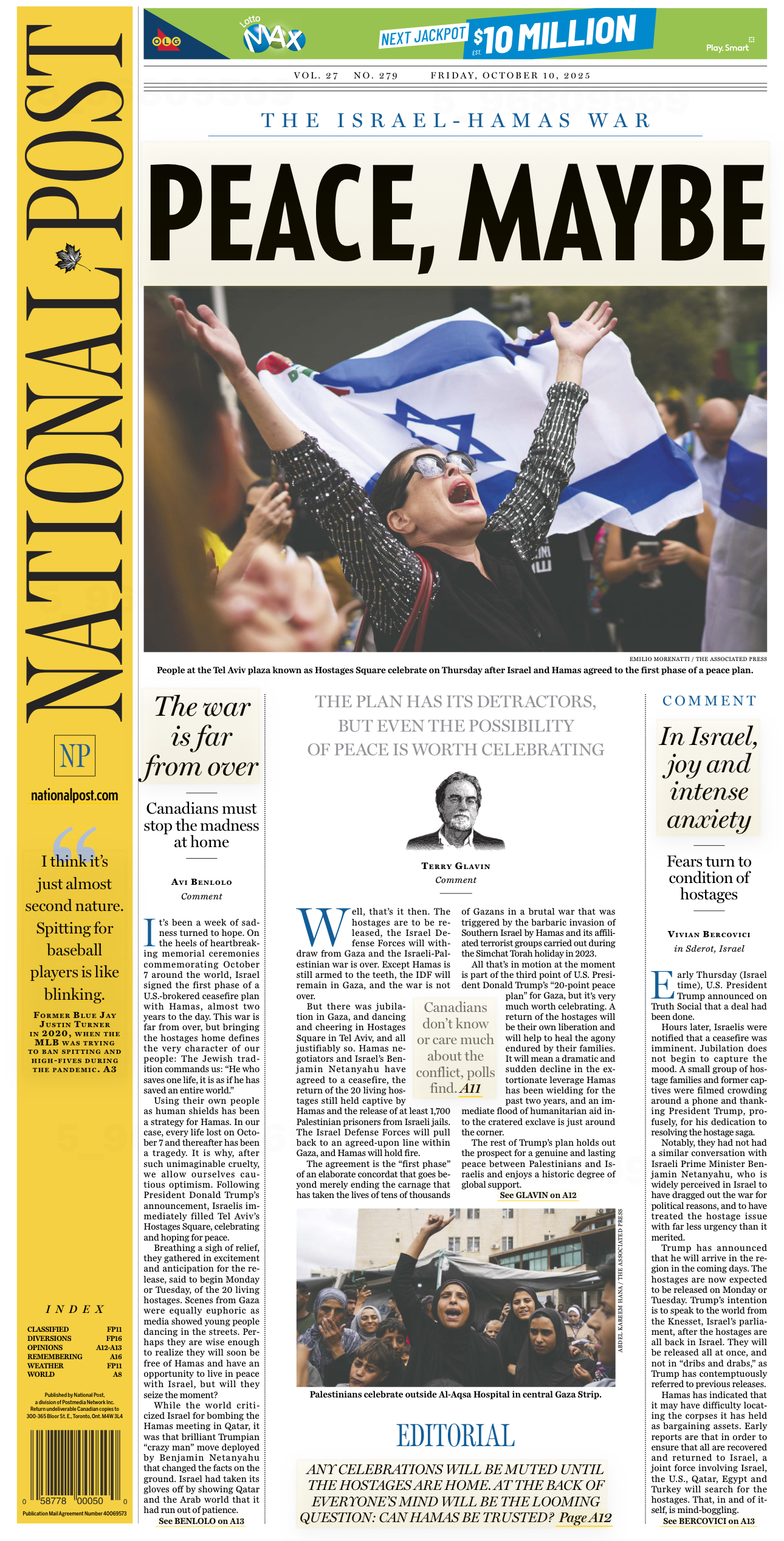 In a front-page opinion published today in the National Post, AGPI Founder and CEO Avi Benlolo cautioned that “our universities, our schools, even our streets, are being taken hostage by extremism and antisemitism.” The commentary, titled “Peace Has Been Offered — But Will Palestinians Seize the Moment?”, explains how Hamas’s war on Israel has now extended into Western democracies, including Canada, through the spread of radical ideology and intimidation.