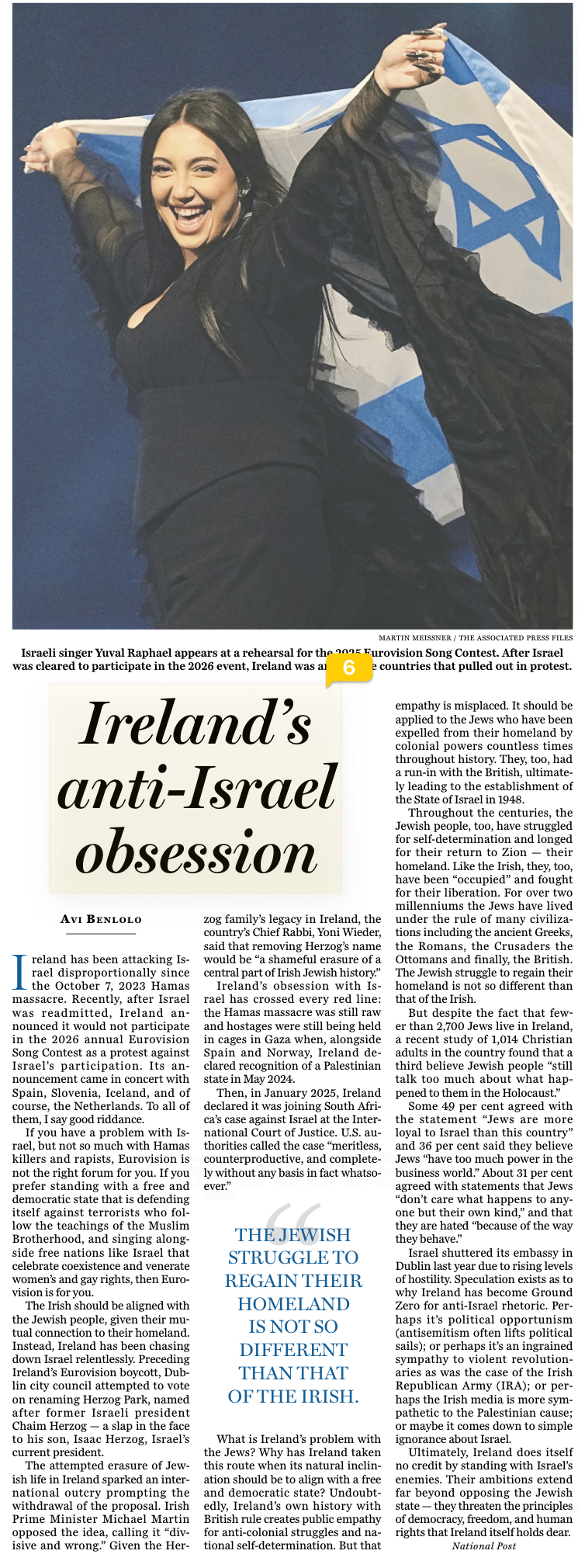 In today's National Post The Abraham Global Peace Initiative (AGPI) condemned Ireland’s increasingly disproportionate and hostile posture toward the State of Israel, warning that recent actions place Ireland on the wrong side of democracy, human rights, and historical truth. Since the Hamas massacre of October 7, 2023, Ireland has pursued a pattern of singling out Israel while showing moral ambivalence toward a terrorist organization responsible for mass murder, rape, and hostage-taking. Most recently, Ireland announced it would not participate in the 2026 Eurovision Song Contest in protest of Israel’s inclusion — a decision echoed by Spain, Slovenia, and the Netherlands. If a country cannot stand alongside a free and democratic state defending itself against terrorism, then it has no place in a forum celebrating coexistence, pluralism, and freedom. This hostility has extended beyond symbolism. Dublin City Council’s attempt to rename Herzog Park — honouring former Israeli President Chaim Herzog — represented an effort to erase Jewish history in Ireland, prompting international condemnation and rejection by Ireland’s own Prime Minister, who rightly called the proposal “divisive and wrong.” Ireland crossed another red line by recognizing a Palestinian state in May 2024...Click Here to read the full article.