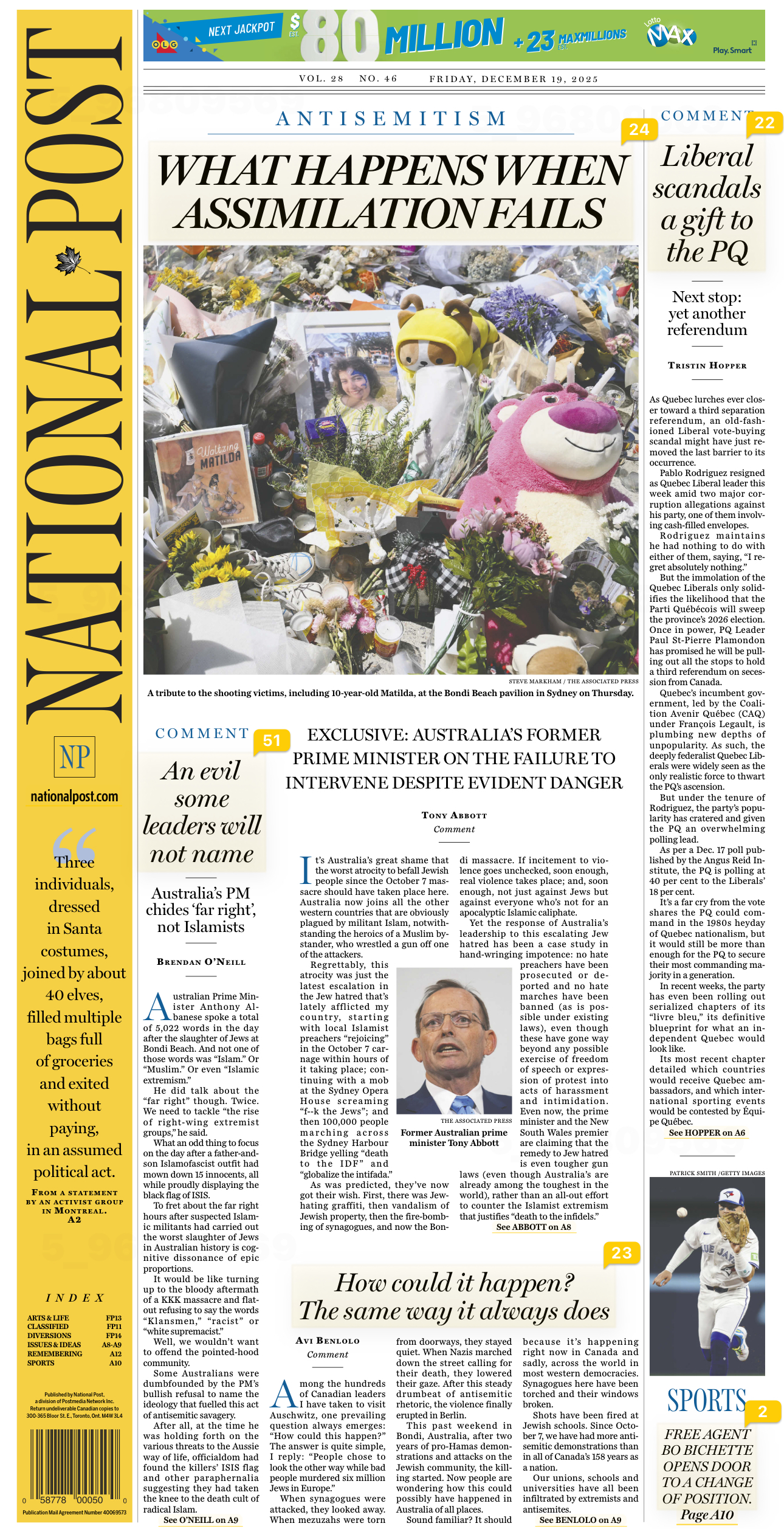 The Abraham Global Peace Initiative (AGPI) today highlighted a front-page commentary in the National Post by its Founder and CEO, Avi Abraham Benlolo, warning that Canada is facing a defining moment as antisemitism escalates at an unprecedented pace. Drawing stark parallels between pre-Holocaust Europe, the recent Bondi Beach massacre in Australia, and events unfolding in Canada, Benlolo argues that violence does not erupt in a vacuum—it follows years of silence, normalization, and indifference. Since October 7, Canada has witnessed more antisemitic demonstrations than in its entire history, alongside shootings at Jewish schools, arson attacks on synagogues, and the infiltration of extremist ideology into unions, schools, and universities. READ MORE
