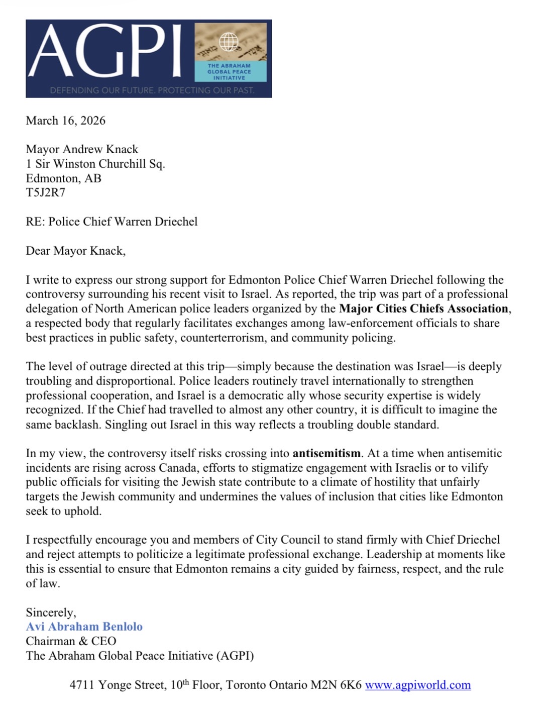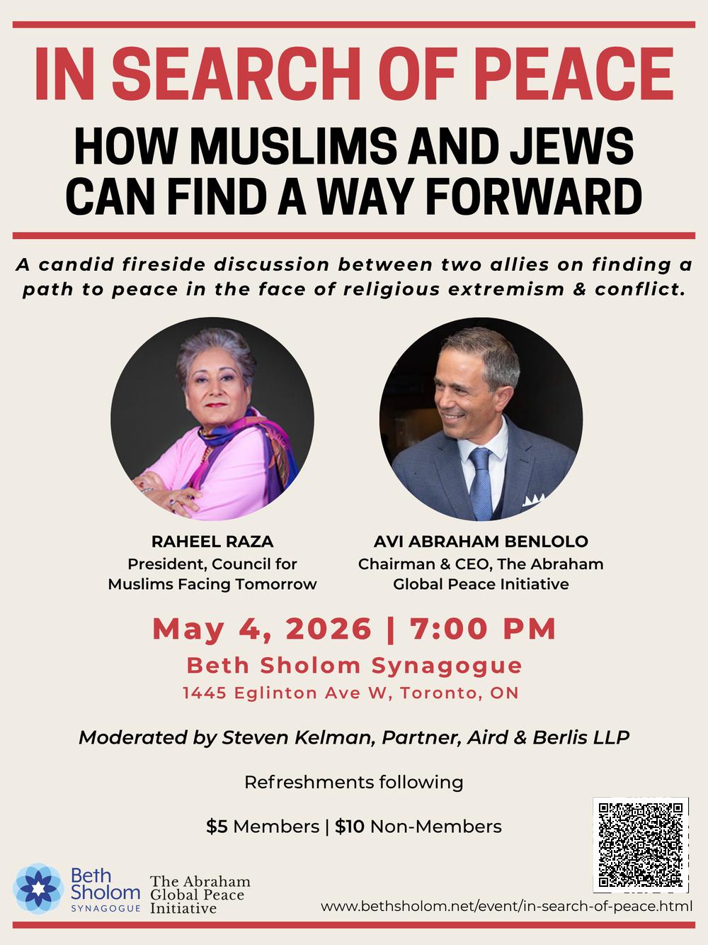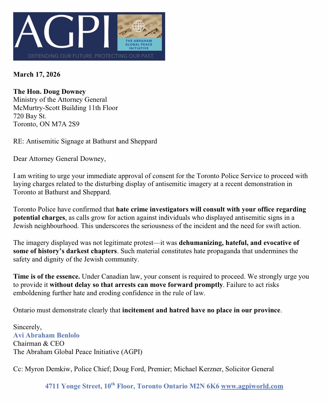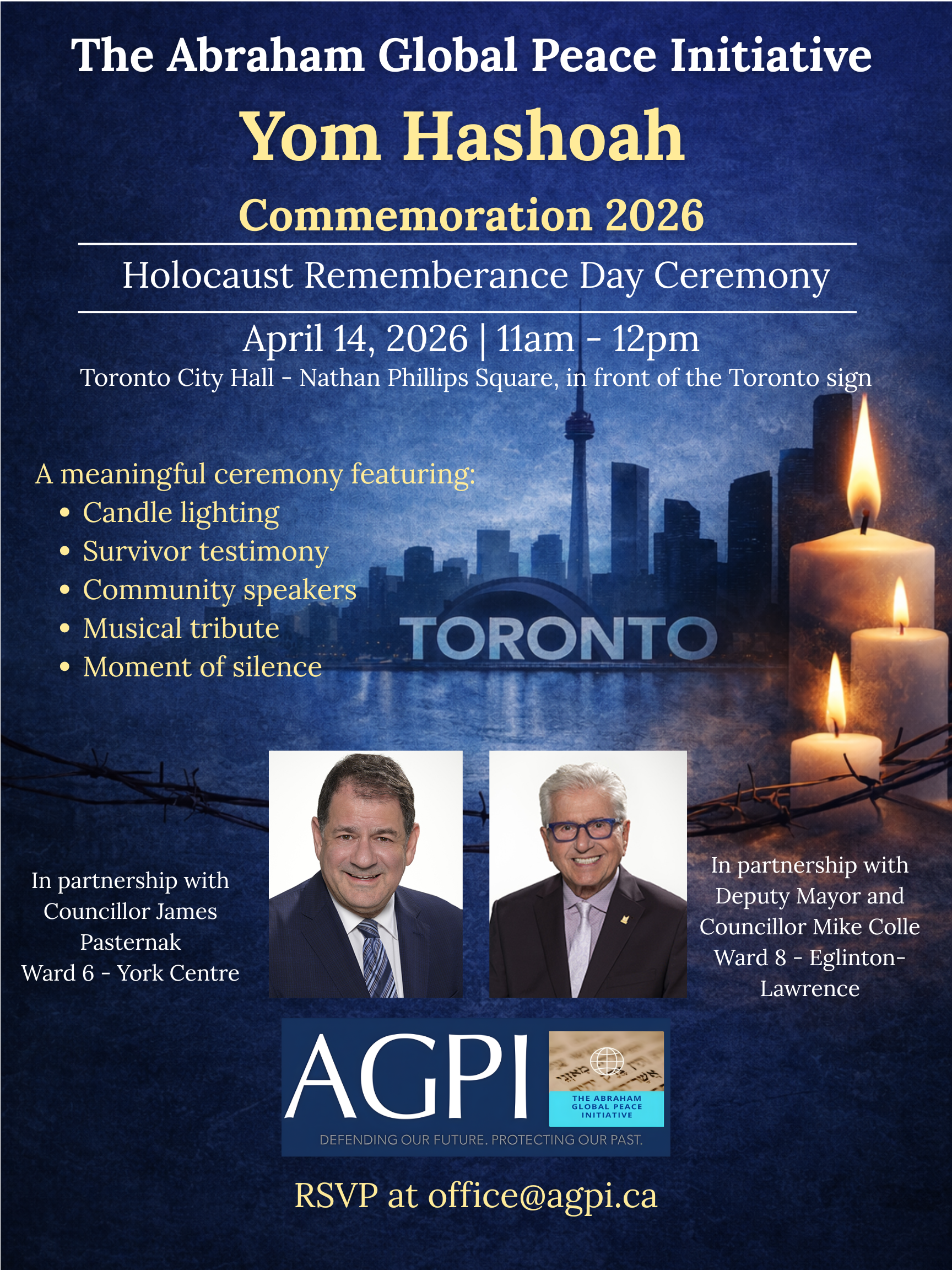 March 7, 2026: As we awoke this Shabbat morning, we learned of two terrorist attacks against prominent synagogues in the Greater Toronto Area. The front entrances of Thornhill’s Beth Avraham Yoseph and Toronto’s Shaarei Shomayim Synagogues were riddled with bullets overnight. These frightening attacks follow a shooting earlier this week at Temple Emanu-El in North York. The Abraham Global Peace Initiative’s Chairman and CEO, Avi Abraham Benlolo, met with York Regional Police Deputy Chief Kevin McCloskey and Deputy Chief Paulo Da Silva in front of the BAYT Synagogue in Thornhill to discuss the overnight attack. Read More HERE.