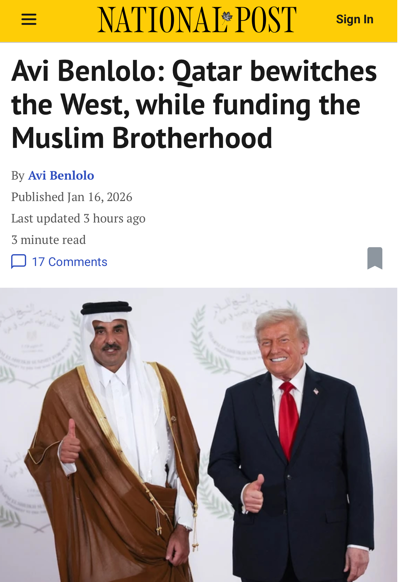 In last week's National Post, AGPI expressed that Qatar’s financing of Hamas as part of the Muslim Brotherhood, makes Qatar complicit in the October 7 massacre of 1,200 people in southern Israel and the horrific war that took place in the Gaza Strip. Trump’s opening salvo against the Muslim Brotherhood was strictly on their branches in Lebanon, Jordan and Egypt, it's birthplace. The U.A.E. is right about depriving the terrorist organization with the “resources that enable them to engage in, support, or justify acts of extremism, hatred and terrorism.” Argentina also declared on Thursday the Muslim Brotherhood branches in Lebanon, Egypt and Jordan terrorist organizations. Article is available in full HERE